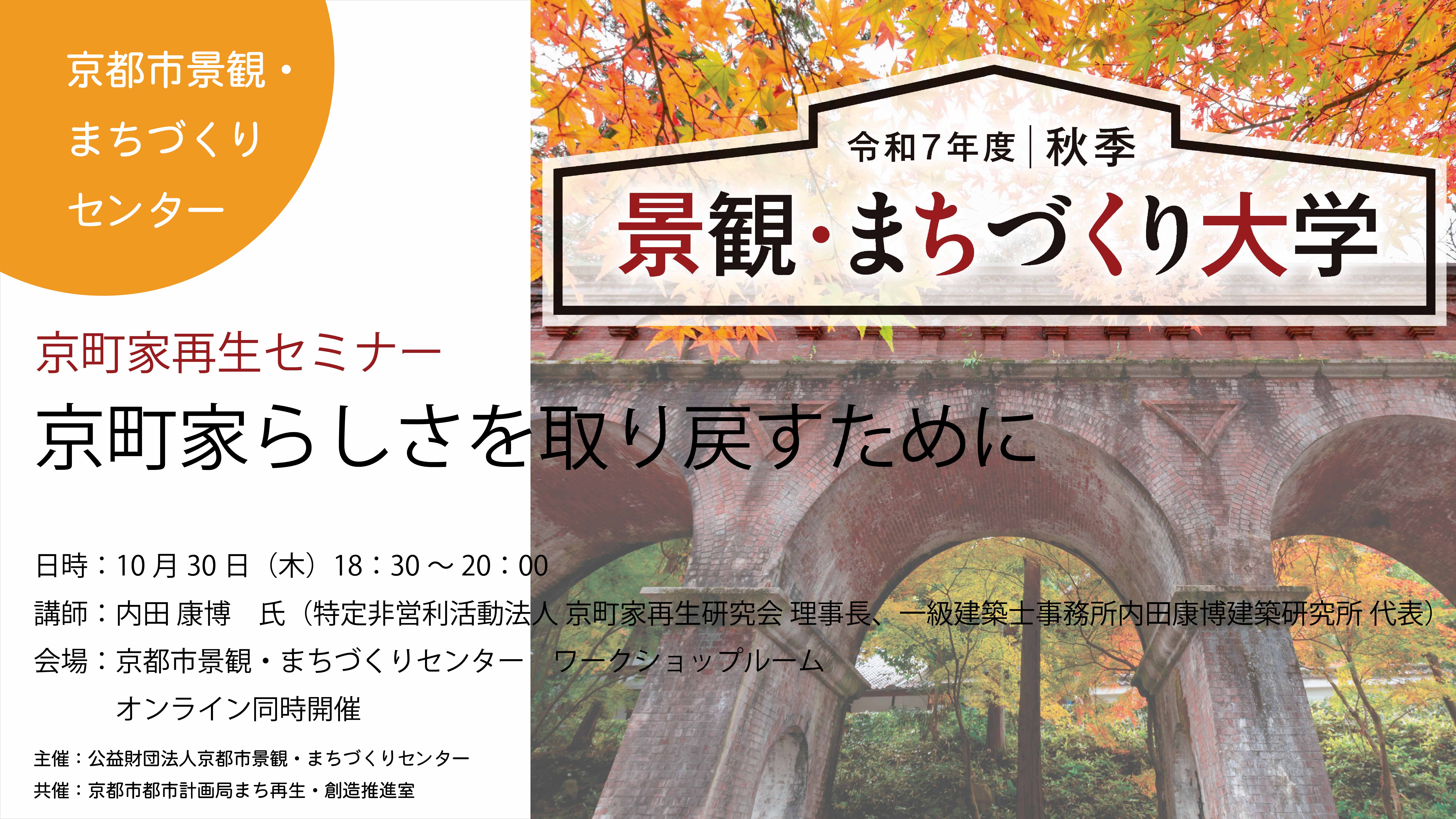 主催・共催・後援主催:公益財団法人京都市景観・まちづくりセンター 共催:京都市都市計画局まち再生・創造推進室