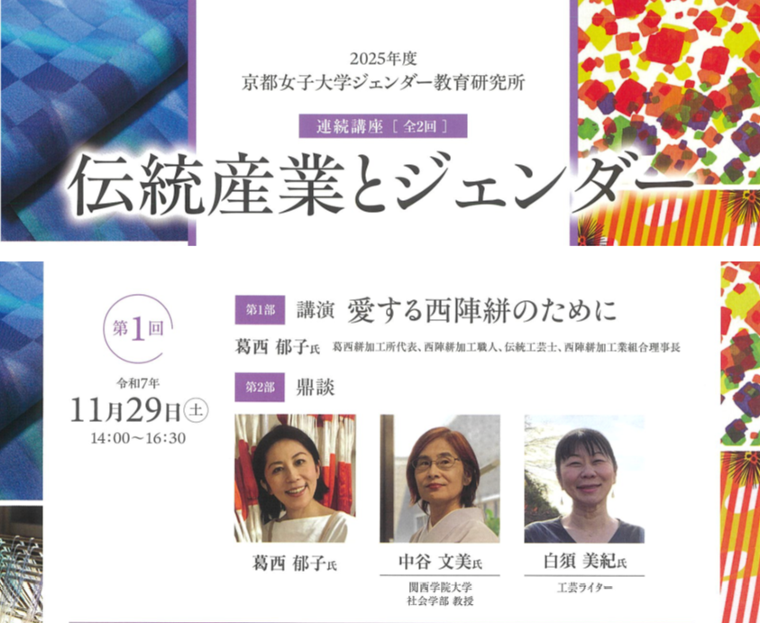 京都女子大学ジェンダー教育研究所は、2025年度 シンポジウム「伝統産業とジェンダー」(全2回)を開催します。