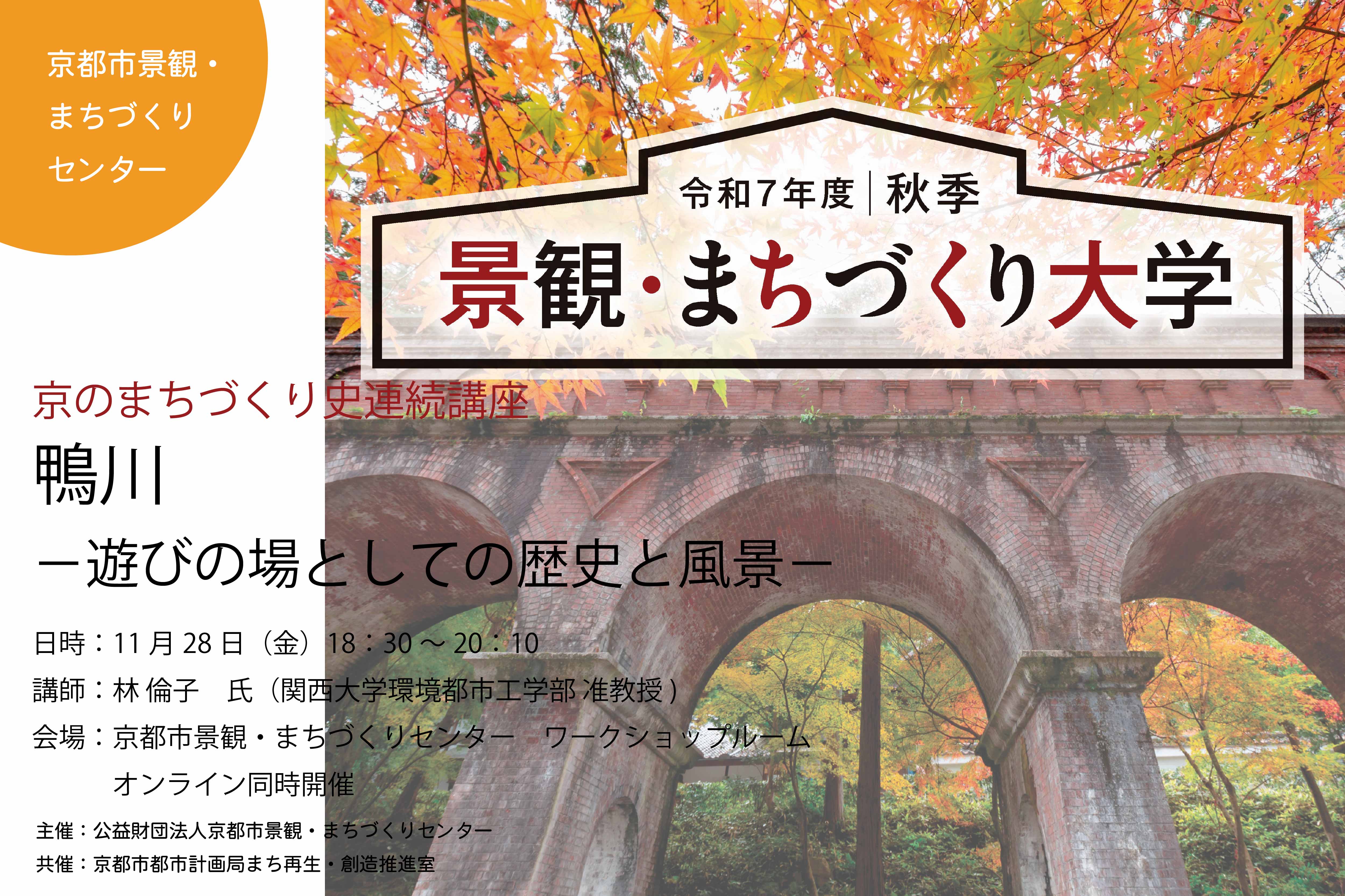 【京都市景観・まちづくりセンター】京のまちづくり史連続講座「鴨川―遊びの場としての歴史と風景―」