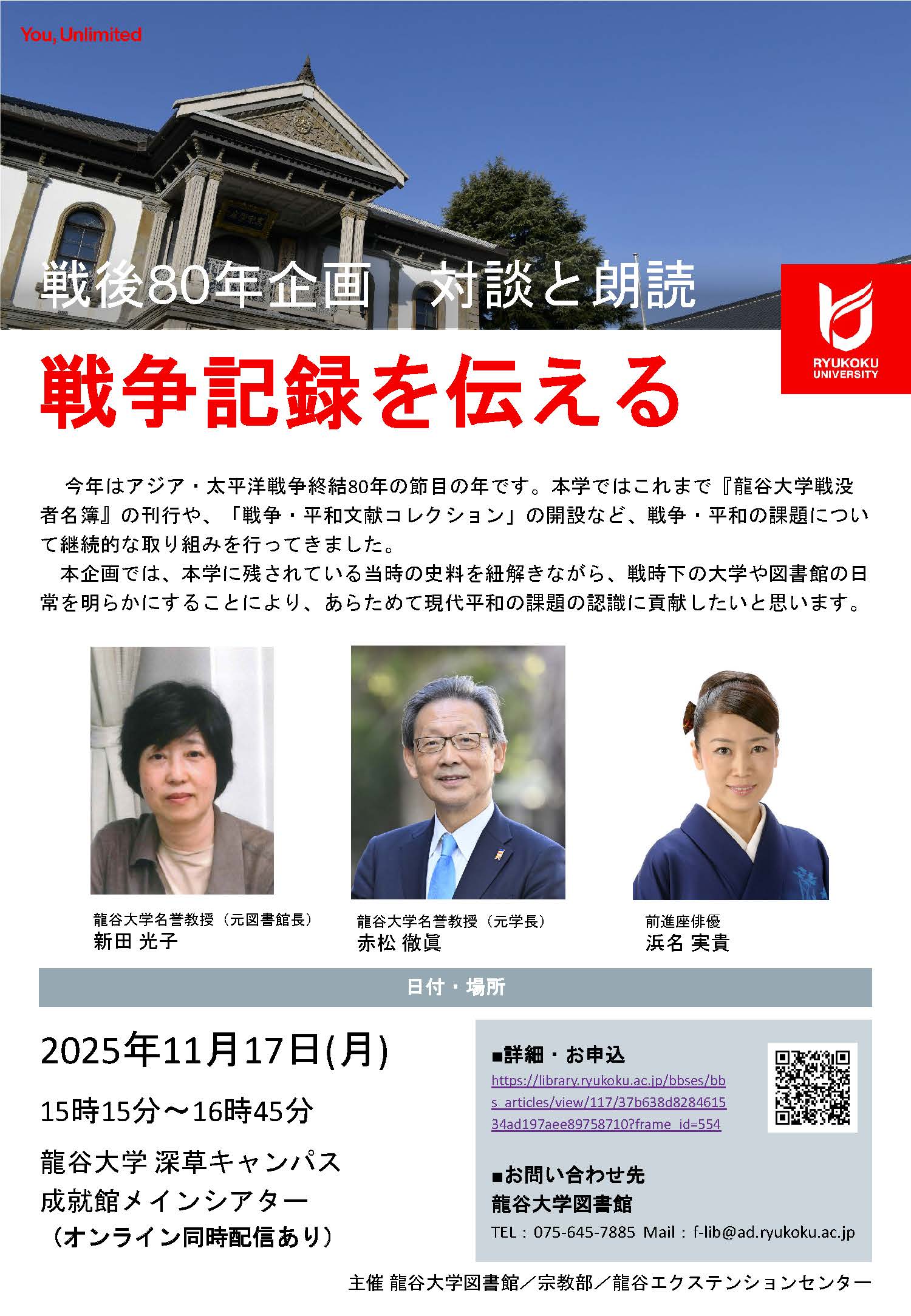 【龍谷大学】戦後80年企画 対談と朗読「戦争記録を伝える」