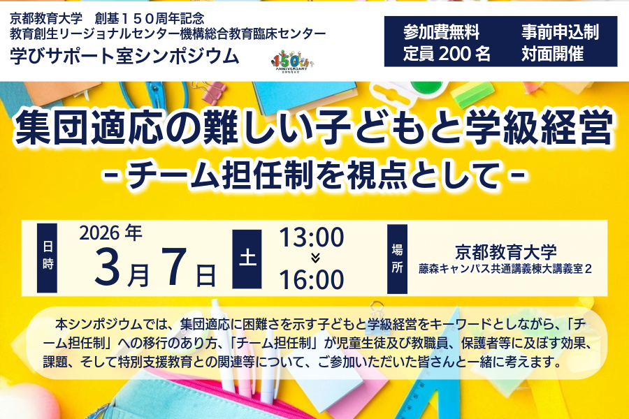 【京都教育大学】令和7年度 学びサポート室シンポジウム「集団適応の難しい子どもと学級経営‐チーム担任制を視点として‐」